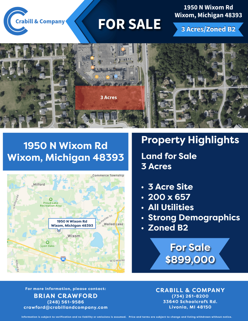 Prime 3-acre (200 x 657) B2-zoned development site for sale at $899,000: all utilities in place, strong demographics, excellent visibility — ready for retail, office, or mixed-use build.