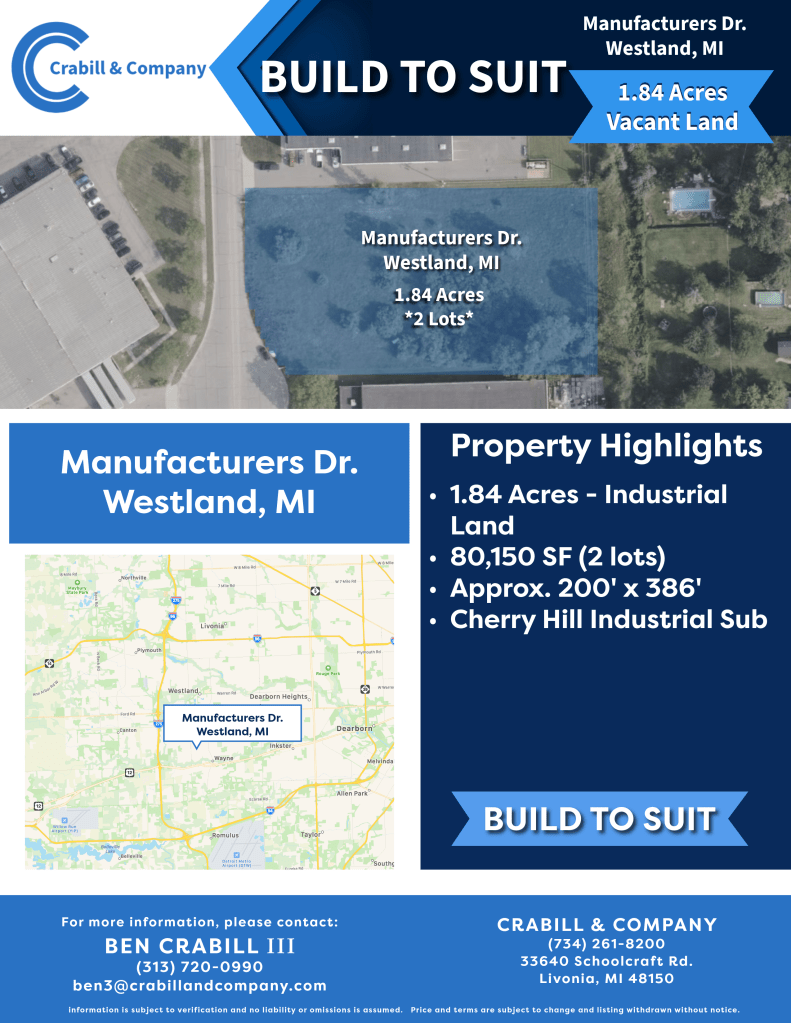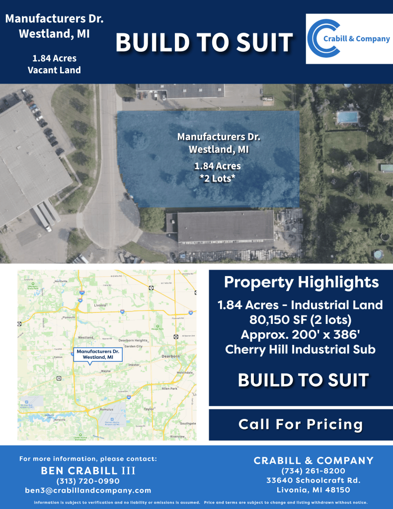 1.84-acre (80,150 SF) industrial land parcel (approx. 200′ x 386′) in Cherry Hill Industrial Subdivision – zoned and ready for development with all utilities available; ideal for owner-user build or investment hold in Flint’s active industrial corridor.